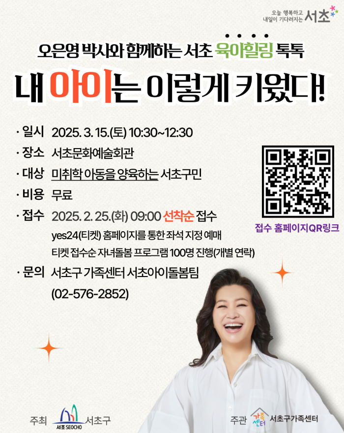 서초구에서 주최하고, 서초구 가족센터에서 주관하는 서초구 오은영의 육아 힐링 톡톡의 참석 가능 대상자와 강의 내용 공유드려요.